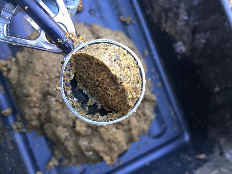 Phân hữu cơ dạng viên nén được đựng trong túi lọc để giữ ẩm và tránh mùn phân rã làm nghẹt đất