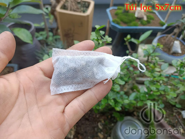 Thông tin chi tiết: - Kích thước: 5x7cm, có dây buộc miệng túi - Chất liệu: vải không dệt - Giúp phân tan chậm, cung cấp dinh dưỡng cho cây một cách từ từ - Ngăn không cho ruồi bọ sinh sôi - Ngăn bã phân lọt xuống làm bí, bết chất trồng - Bán theo cục, mỗi cục 100 túi. - Thích hợp cho chậu cây bonsai mini, siêu mini